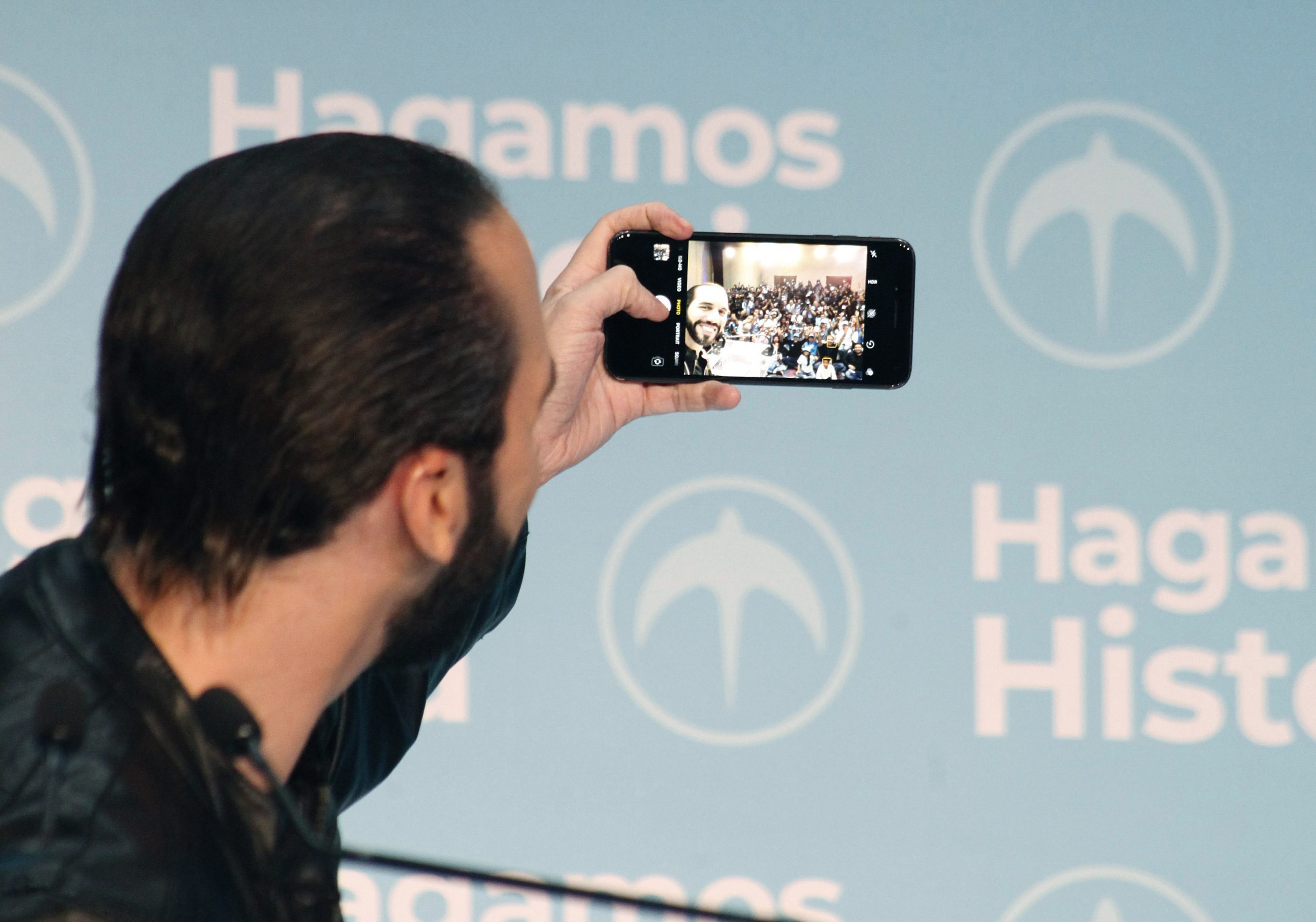 Foto 2. Nayib Bukele, candidato a la Presidencia de El Salvador, celebra su triunfo en las elecciones presidenciales del 3 de febrero de 2019 en San Salvador , El Salvador. Bukele se convirtió en el primer presidente joven en gobernar El Salvador y en no ser elegido de los partidos de izquierda y derecha que gobernaron el país en los últimos 20 años. 1 de Julio de 2019.