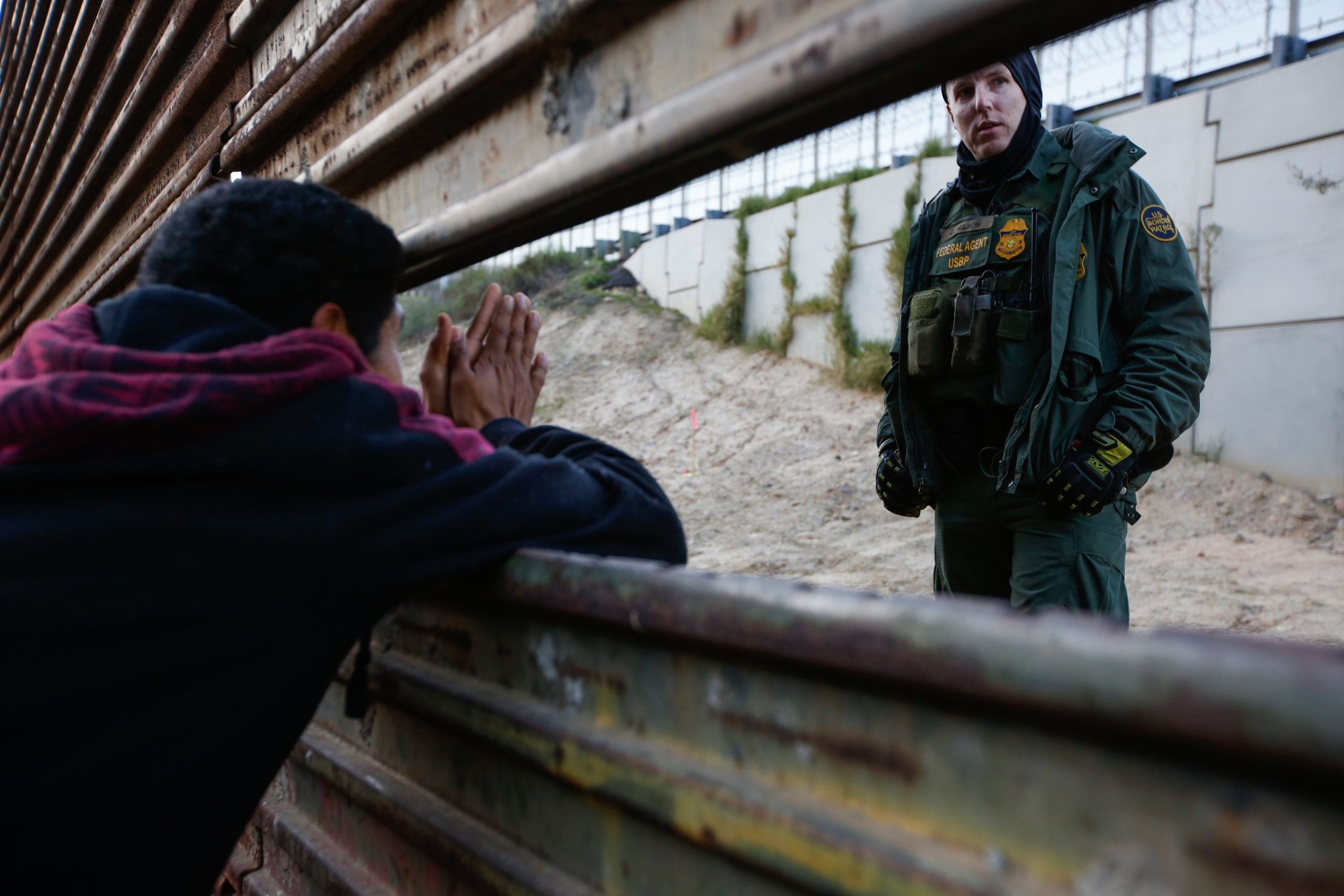 Foto 1. Migrante hondureño intentando cruzar el muro fronterizo y pasar a San Diego, California, desde las playas de Tijuana, México, el 15 de diciembre de 2018.