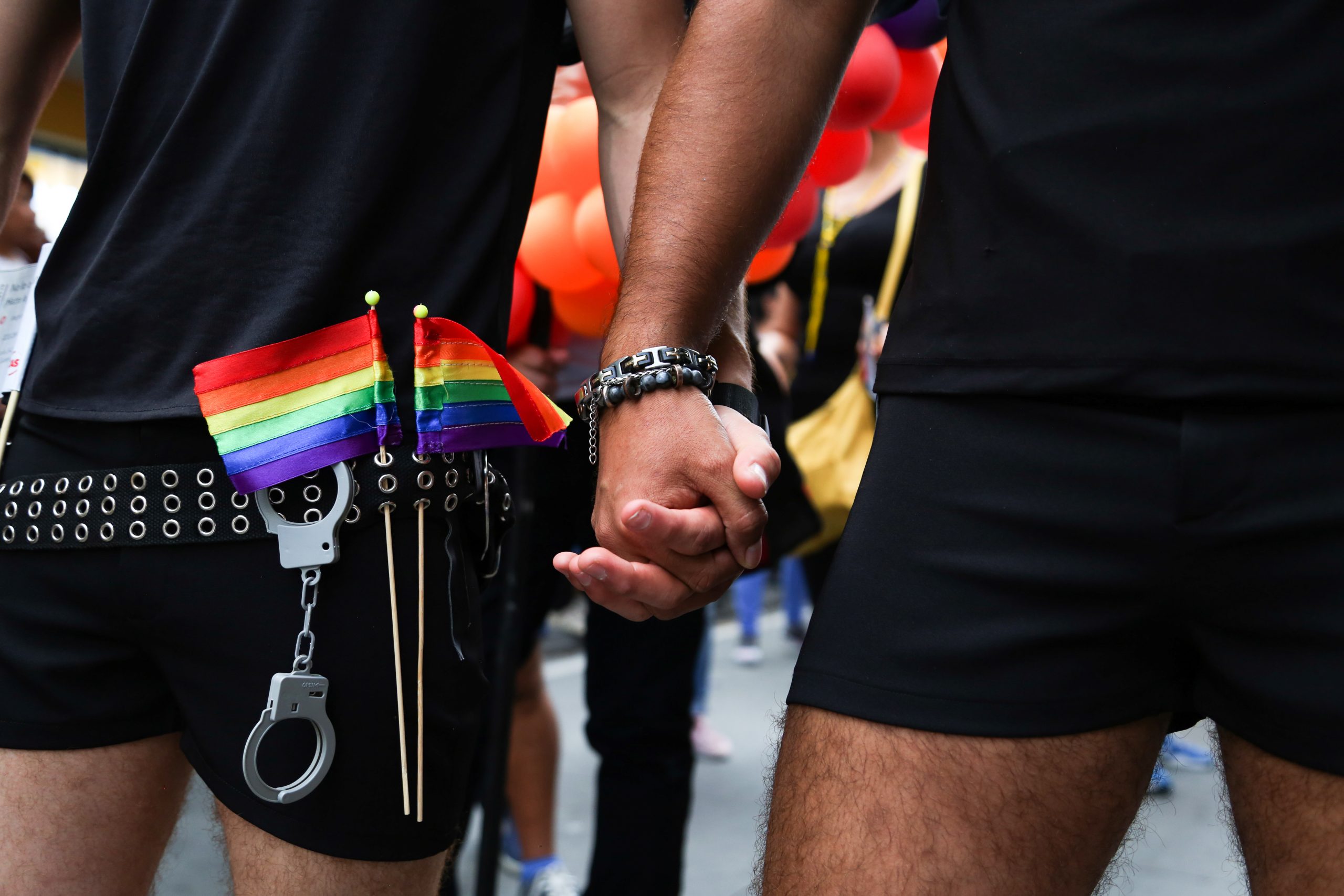 Una pareja del mismo sexo, durante la “Marcha del orgullo” de la comunidad LGTBIQ, demuestra su unión libre en Guatemala, un país donde el matrimonio igualitario y la unión civil aún no están amparados por la ley. 20 de junio de 2019.