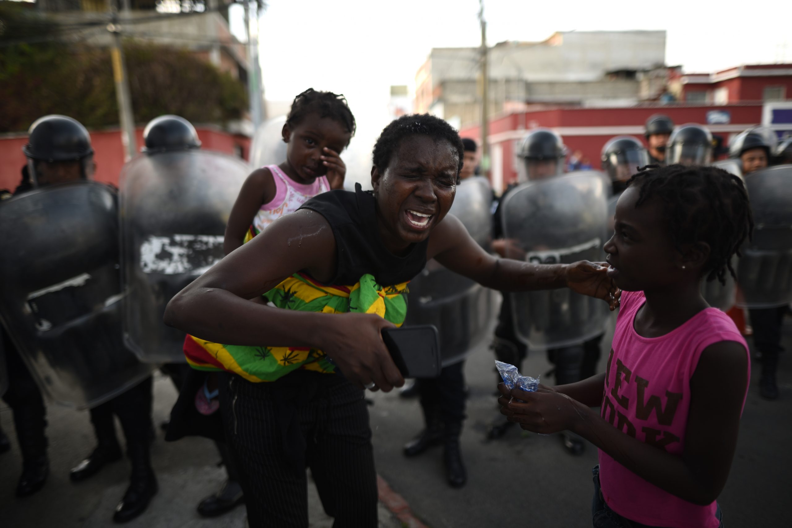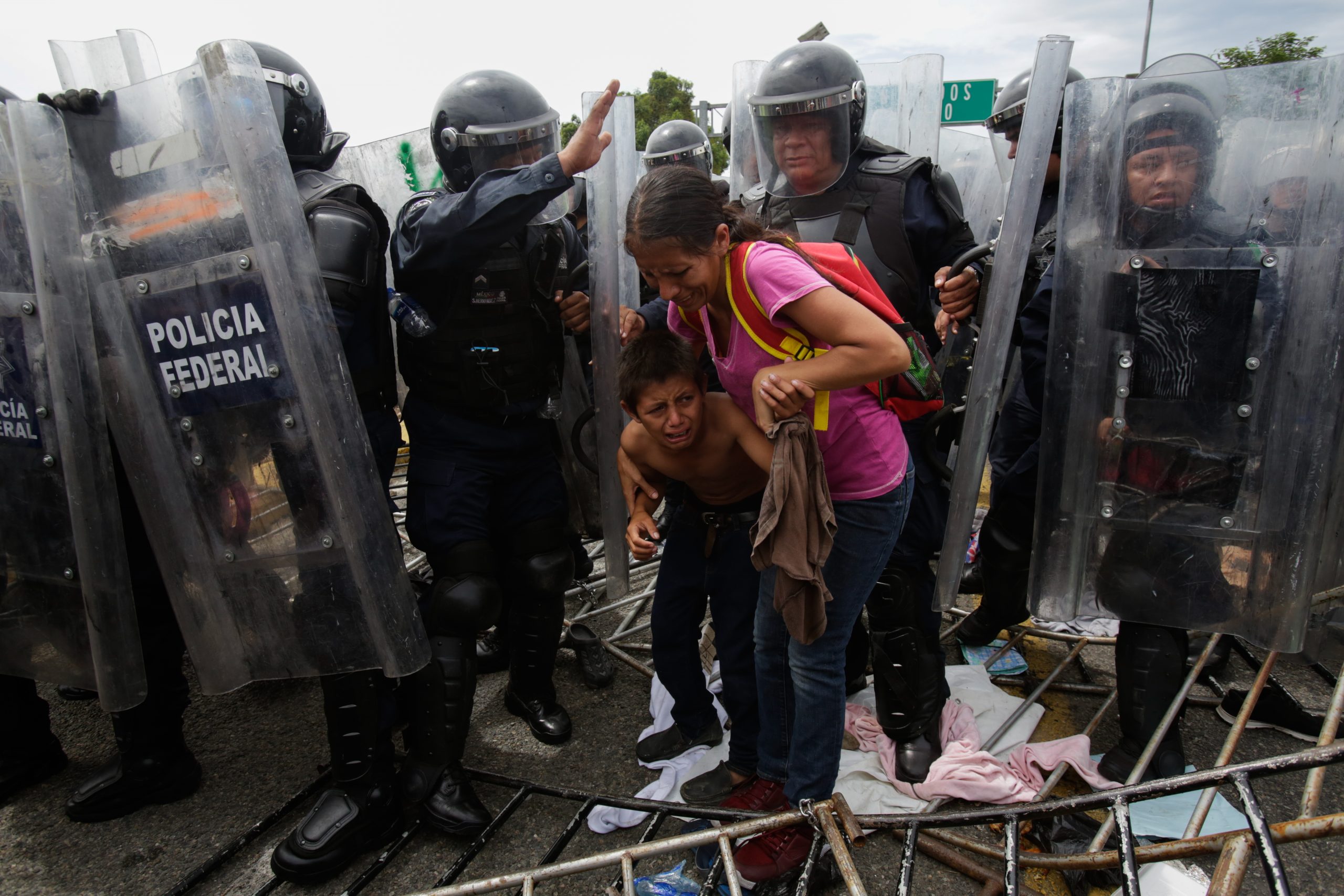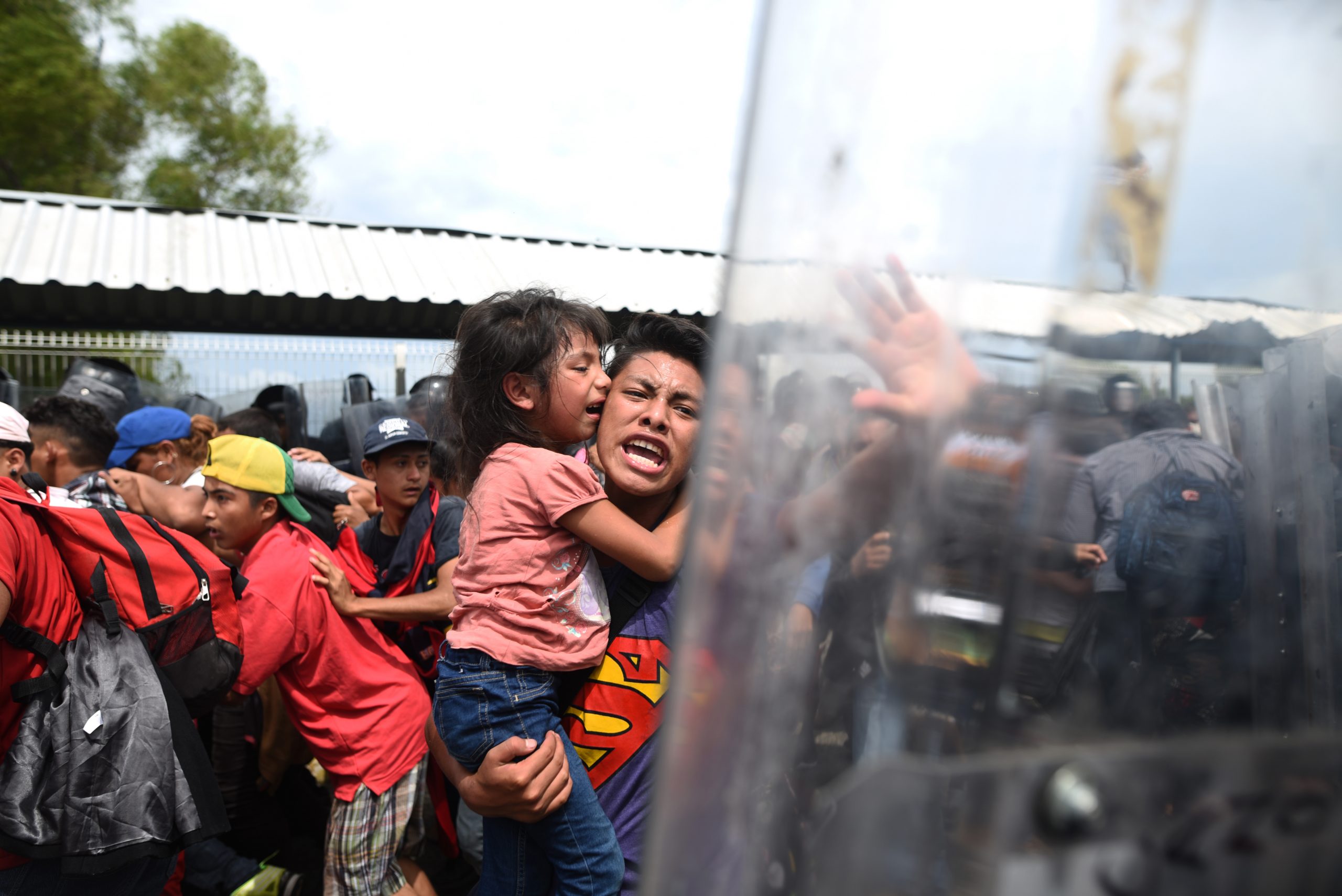 Foto 2. Los centroamericanos que viajaban en una caravana masiva hacia el territorio estadounidense fueron rodeados por la policía Federal Mexicana tras una serie de disturbios con los migrantes en el cruce fronterizo de Ciudad Hidalgo, México, el 19 de octubre de 2018.