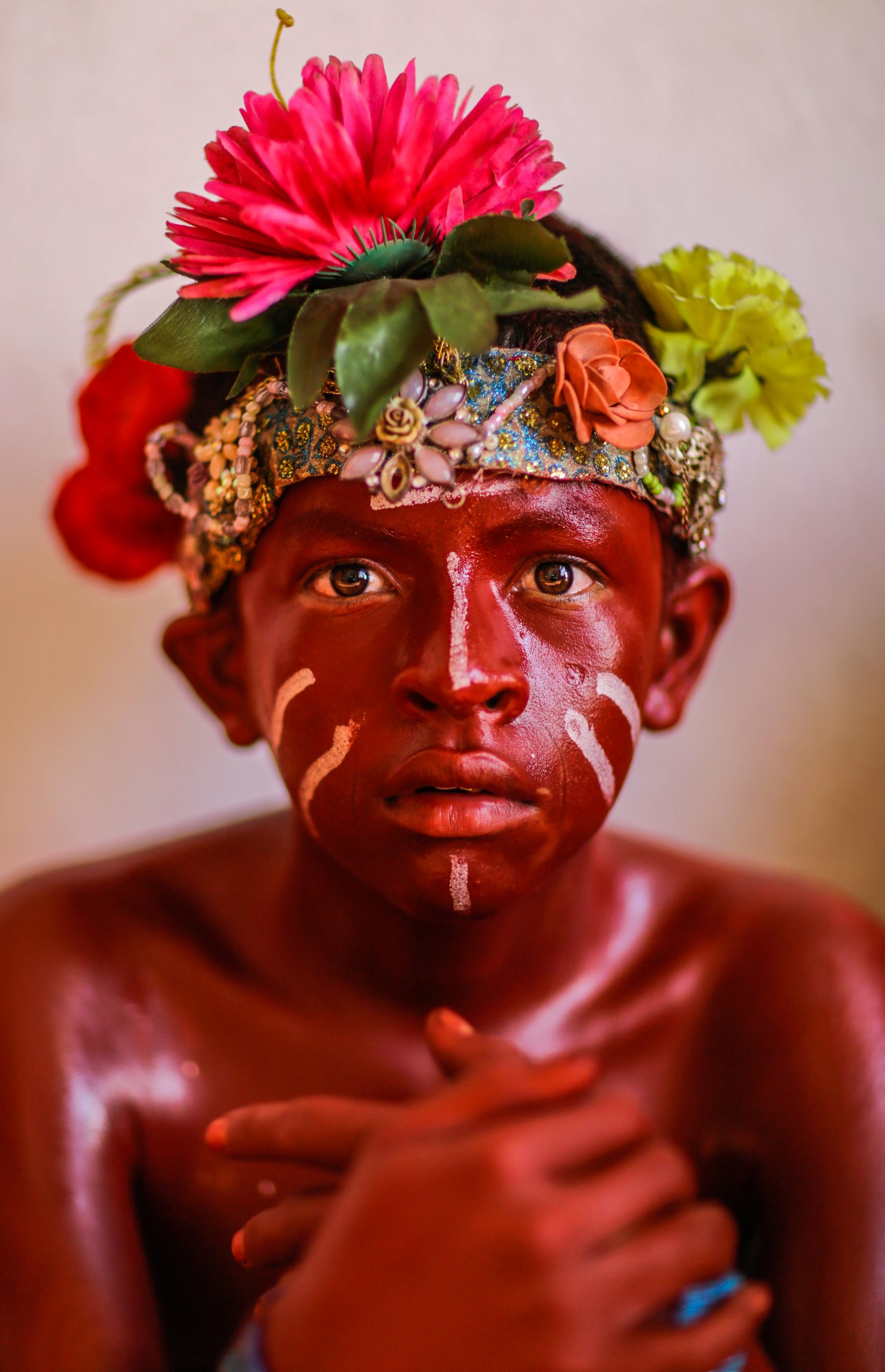 Los niños se pintan con aceite quemado durante la celebración del festival de Santo Domingo de Guzmán en Managua, Nicaragua. El evento dura 10 dias. 1 de julio de 2019.