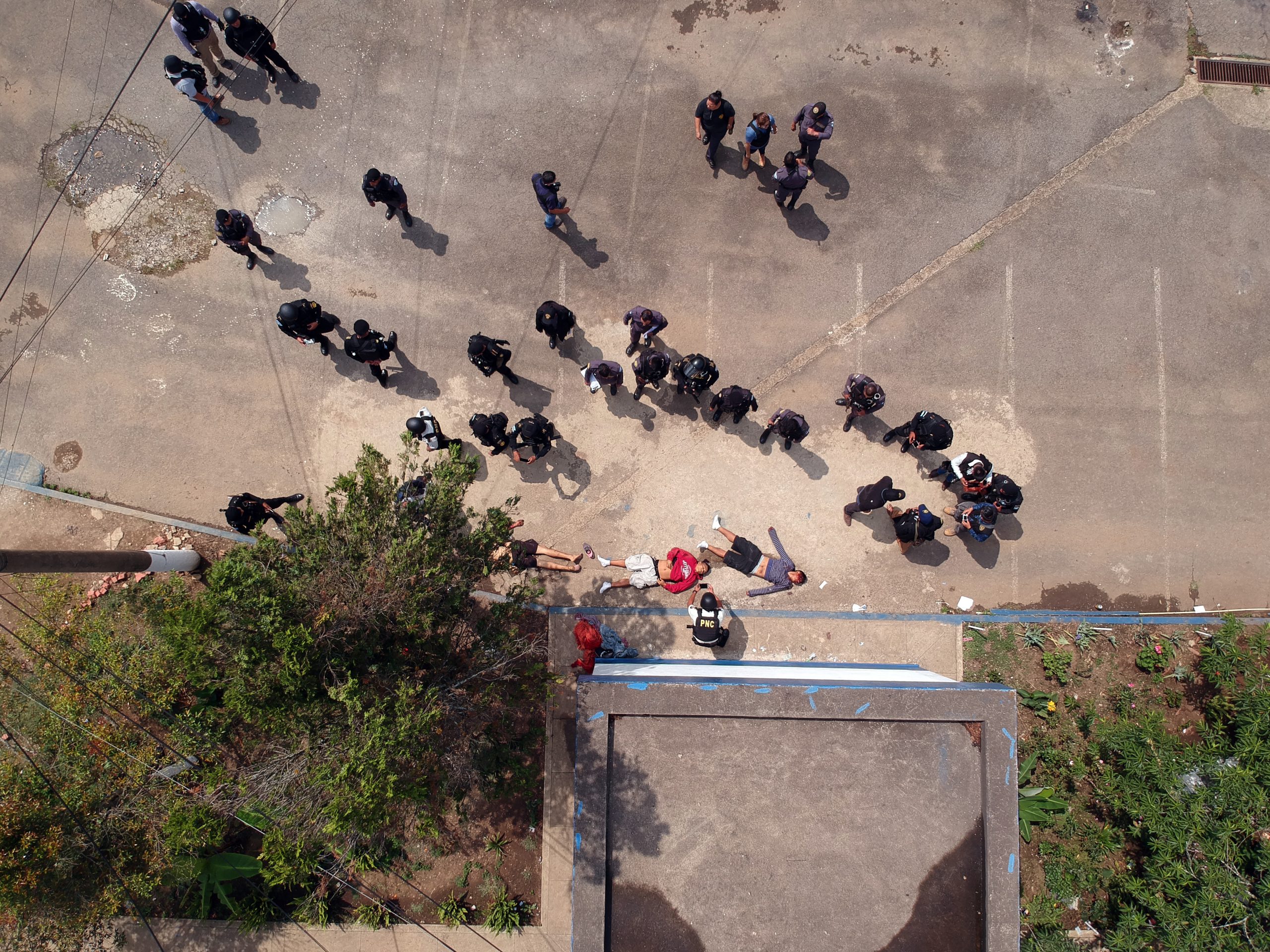 Foto 1. La Policía Nacional Civil y la seguridad del sistema penitenciario trabajan para identificar los cuerpos de tres reos asesinados durante un motín en la granja penal Pavón, en Fraijanes, a las afueras de la ciudad capital de Guatemala, el 19 de mayo de 2019.