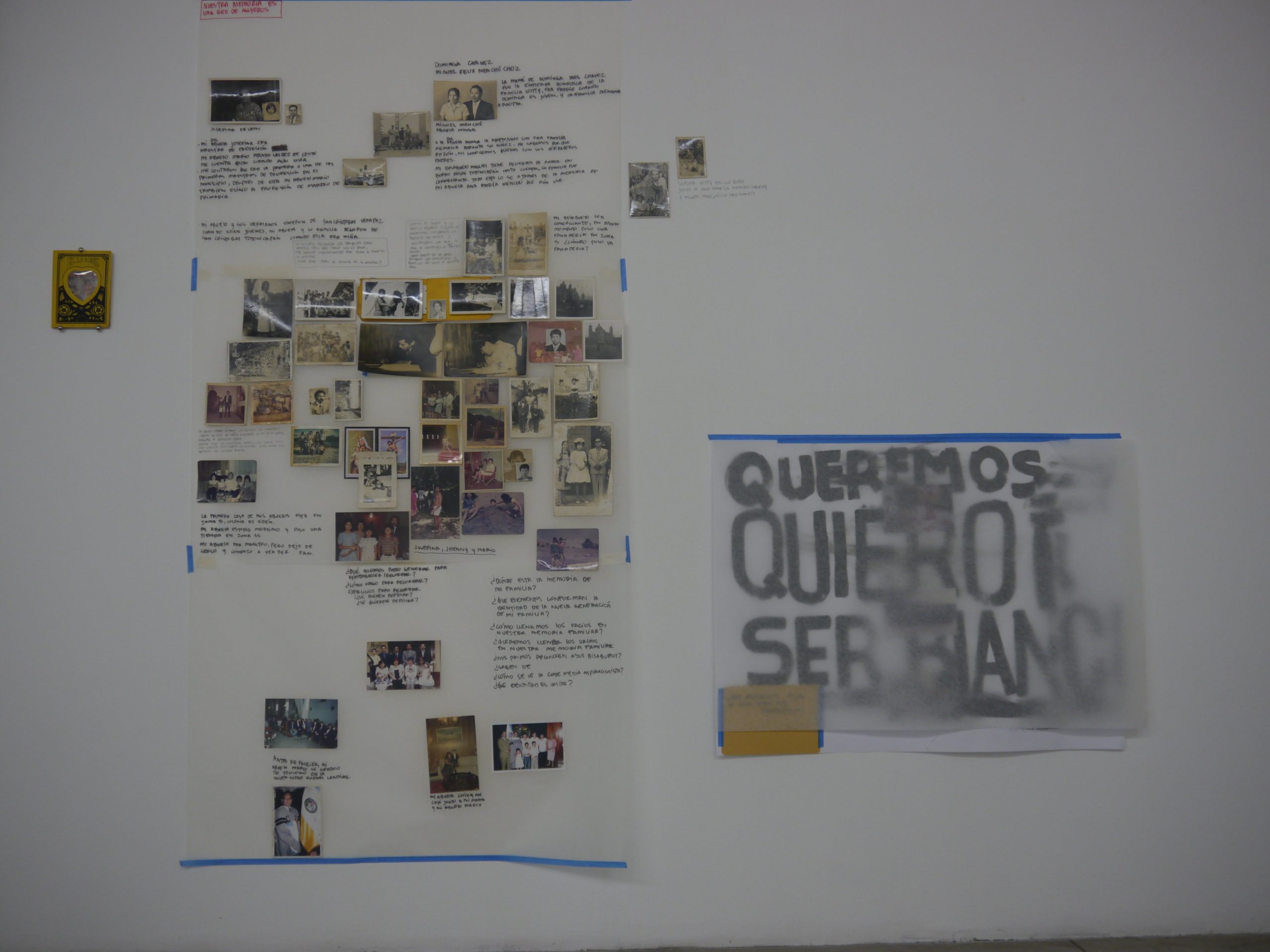 Hablar del Centro Histérico o lo cutre también es hablar de mi hogar. Para hablar de la Zona 1, no basta con conocer su historia sino que se debe conocer las historias de quienes viven ahí. Se convirtió en un centro ¿multicultural? A partir de la migración a este espacio se articula la dinámica de la ciudad de Guatemala, y ahí radica la importancia para quienes hemos llegado a este no-lugar. Estas historias son una capa más del polvorón que cubre las casas viejas. Si tomas las esquinas de cualquier calle como referencia para llegar a tu casa, entonces lo has escuchado, de lo contrario, el Centro Histórico es tan ajeno cómo la realidad de quienes estamos en este lugar. Lo cutre también es mi/nuestro hogar, así como los parques, los cables, las palomas, el tendido eléctrico, los desagües, los semáforos, lxs bolxs, las cantinas.. todo esto conforma la decoración del no-lugar. Sin embargo, es importante saber que nuestras historias no son un entretenimiento sino realidades para quien VIVE allí, son esas voces las que beben en los bares o en las calles, y las que gastan las suelas en las aceras. Por eso es justo que la instalación sea de ellxs para ellxs. Este gran hogar se vive con una plática en la mesa, así como cuando se conocen los desconocidos y se genera la empatía de saber que todos andamos jodidxs, porque ¿qué nos queda? Nada más que vernos caminando por la Sexta y saludarnos, porque al final de tanta mierda, nos conocemos.