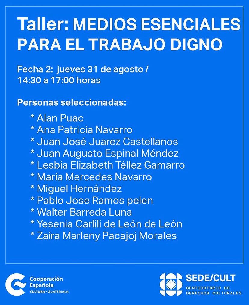 Lugar: Centro Cultural de España en Guatemala, 2do. nivel, 6ta. avenida 11-02.