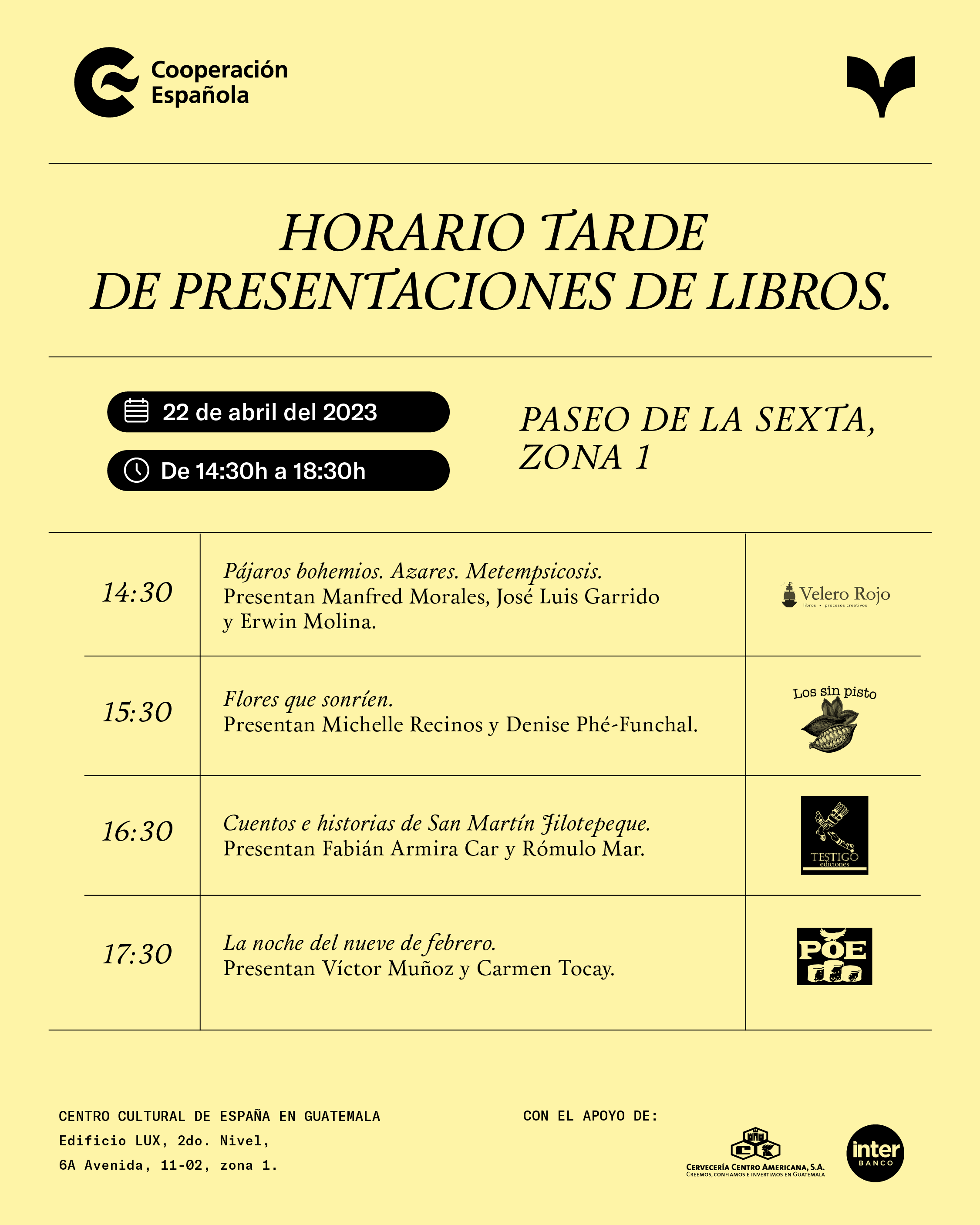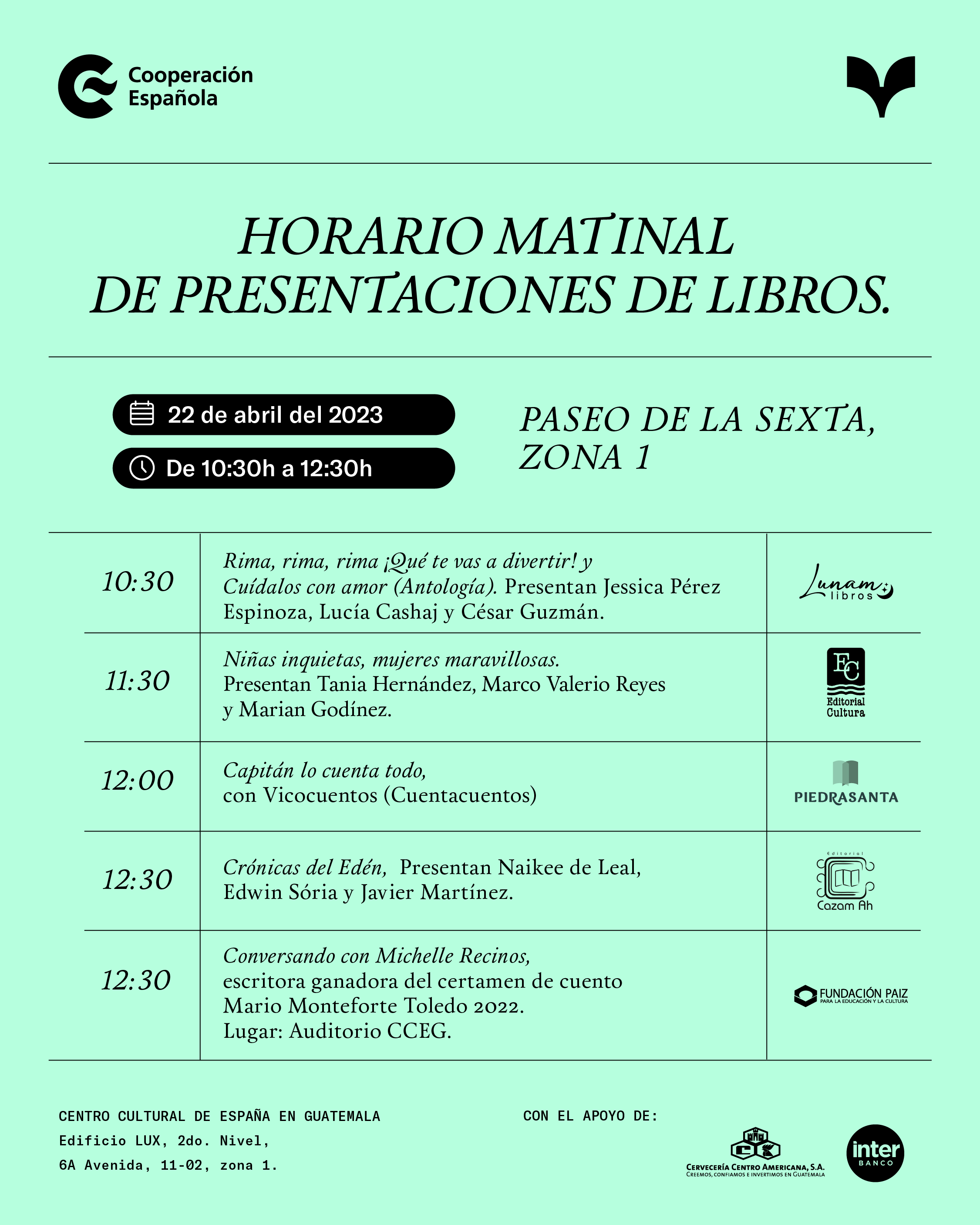 Con este objetivo de promover las novedades editoriales guatemaltecas y dar visibilidad a los agentes que las hacen posibles, la Feria de Editoriales de 2023, contará con stands, presentaciones de libros, firmas de los autores y muchas más actividades para toda la familia.