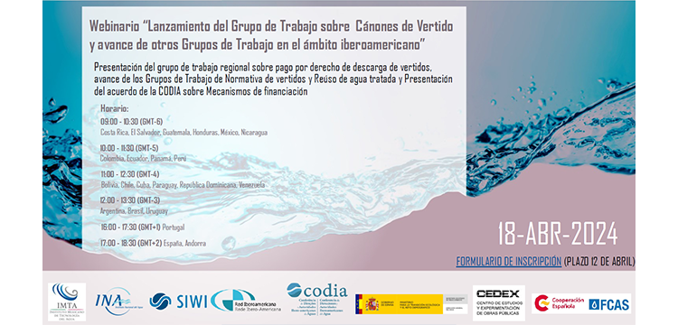 Lanzamiento del webinario ‘Grupo de Trabajo sobre Cánones de Vertido y avance de otros Grupos de Trabajo en el ámbito iberoamericano’ - AECID -FCAS