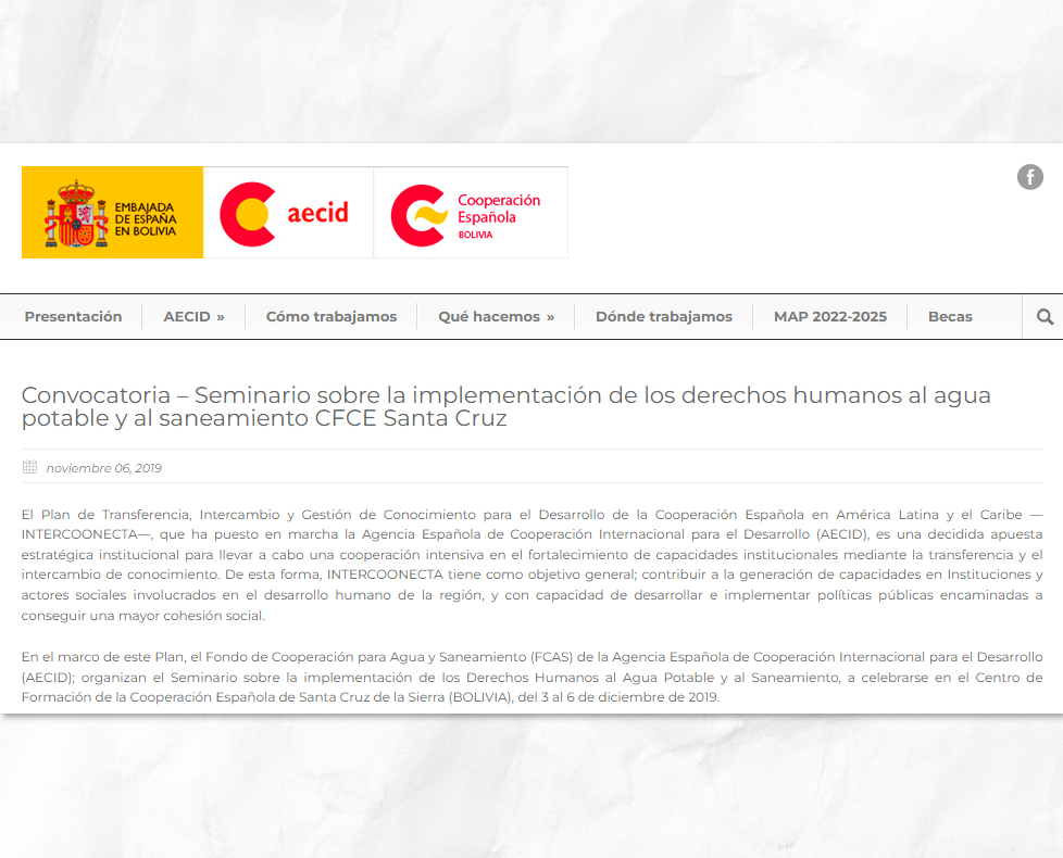 En septiembre de 2021 se llevó a cabo en Bolivia el curso de Periodismo con perspectiva de Derechos Humanos al Agua y al Saneamiento, destinado a periodistas y comunicadores del país: una formación on line gratuita gracias a las becas de AECID.
