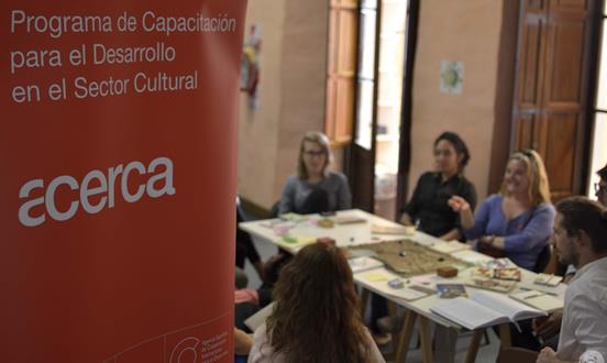 El Programa ACERCA tiene como objetivo principal el fortalecimiento de las capacidades de nuestros socios en todos los ámbitos de la cultura. Una de las líneas de trabajo fundamental es la formación y la capacitación de actores y gestores culturales de instituciones públicas y privadas, para contribuir a la mejora de la oferta cultural de los países socios. También se orienta a facilitar el encuentro entre expertos y profesionales con vistas a establecer mecanismos de cooperación, estrategias regionales y creación de redes. ACERCA busca asimismo el fortalecimiento institucional y la consolidación de las políticas públicas culturales a través de la elaboración de programas de formación específicos a demanda de las instituciones contrapartes. Por último, el Programa no pierde de vista el proceso creativo de artistas y artesanos, cimientos del desarrollo cultural, a través de cursos y talleres.
