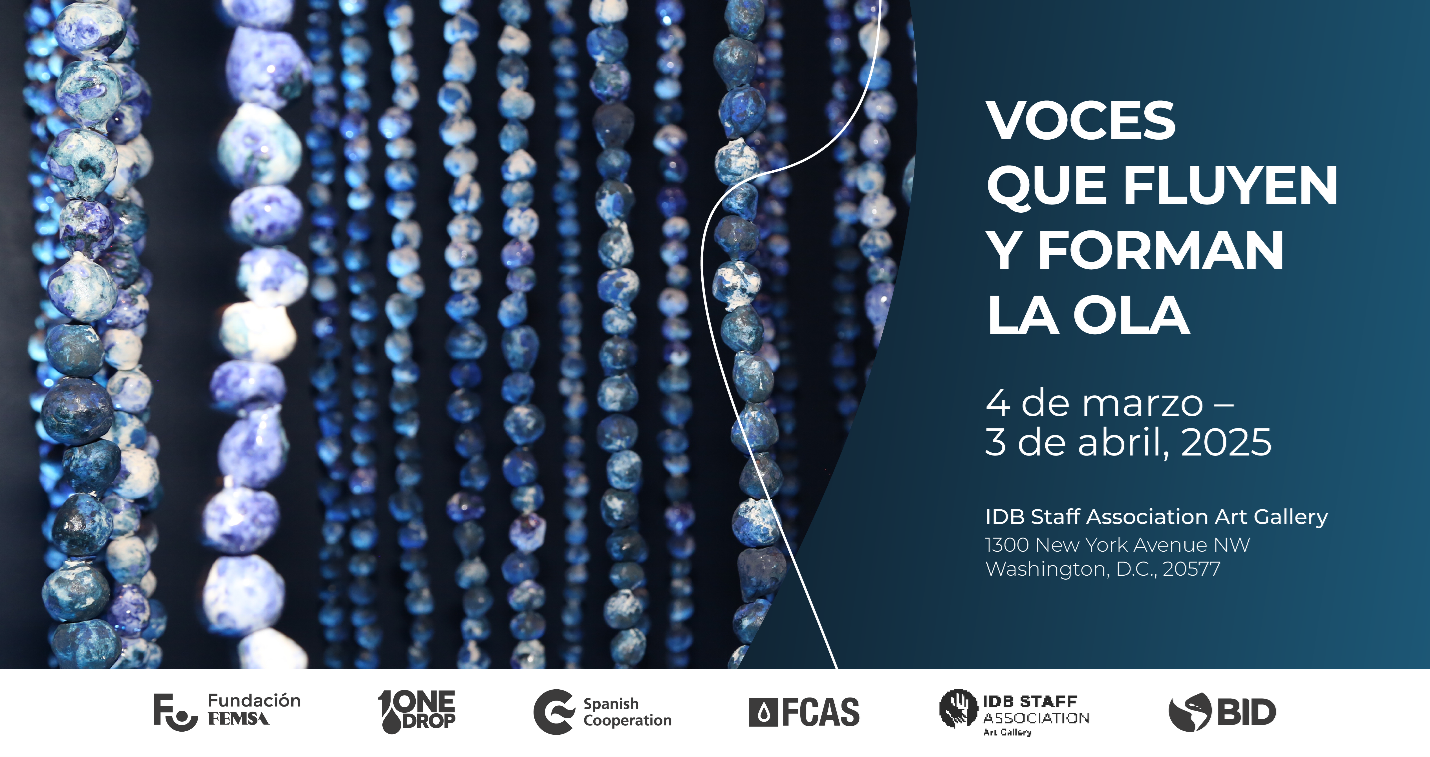Desde el 4 de marzo al 3 de abril de 2025, en la Galería del Staff Association del Banco Iberoamericano de Desarrollo (BID), en Washington D.C, se presenta la exposición ‘Voces que fluyen y forman una ola’, una exposición que aúna arte, activismo por el género y sostenibilidad hídrica. La Agencia Española de Cooperación Internacional para el Desarrollo (AECID) a través del Fondo de Cooperación para el Agua y el Saneamiento (FCAS), junto con el BID y la Fundación Femsa organiza esta muestra que recogerá dos expresiones artísticas.